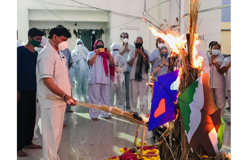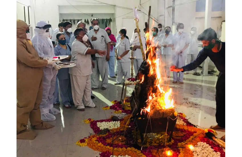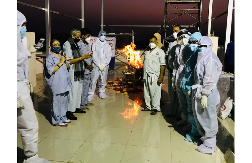 We have arrange a Vaidik Holi celebration for all our Covid patients in BHI, OP Road and BSH , Manjalpur.All our Covid patients were jubilant and participated in the ritual of Vaidik Holi pooja .... very spiritual and pious atmosphere