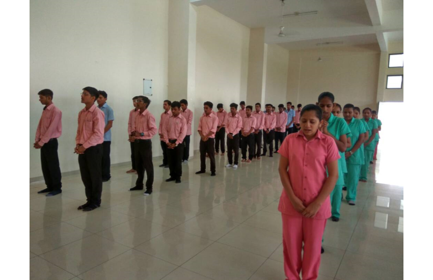 Bankers Nursing Institute students, teachers and staff celebrate International Yoga Day every year with enthusiasm. This year was no exception! The Bhagvad Gita says, "Yoga is the Journey of the self, through the self, to the self." A Nursing career is very demanding - both physically and mentally - and it is important that one learns how to manage