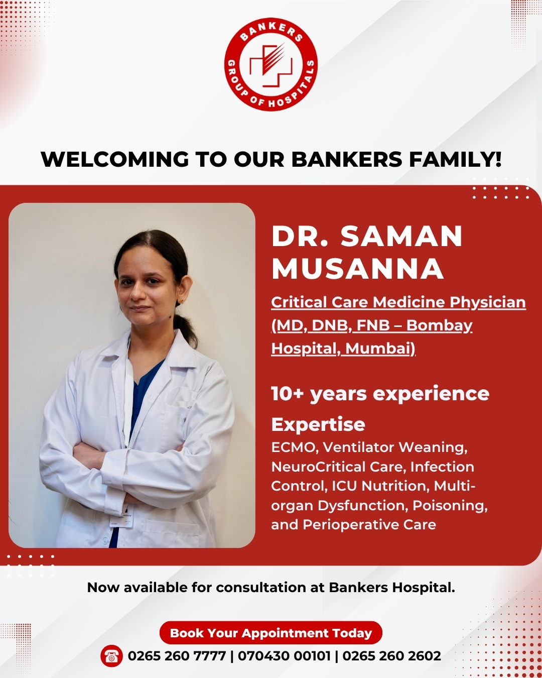 A Warm Welcome to Our New Medical Experts! We are thrilled to announce and welcome two outstanding specialists who have joined the Bankers Group of Hospitals family, further enhancing our commitment to exceptional patient care! Connect with us to schedule an appointment!