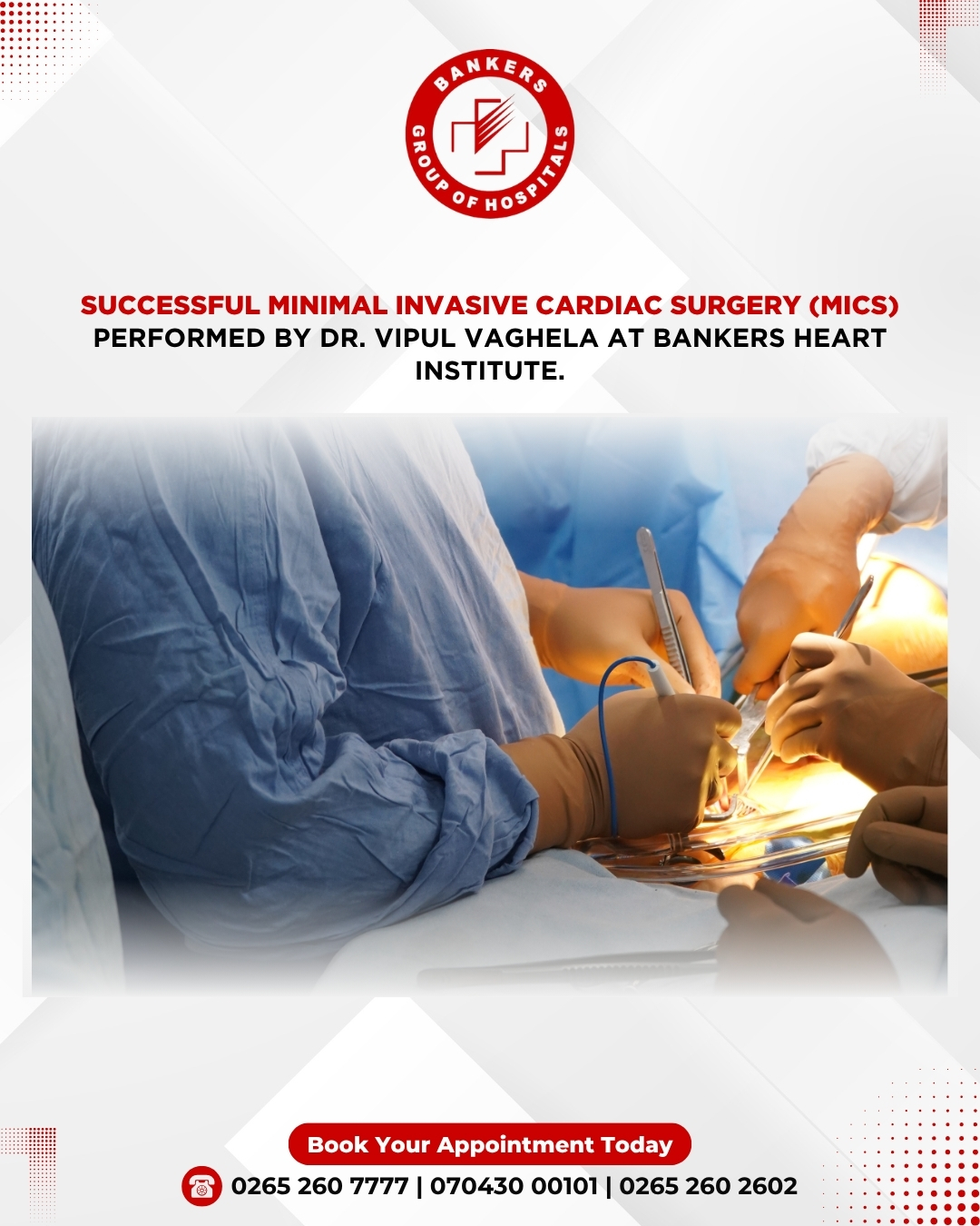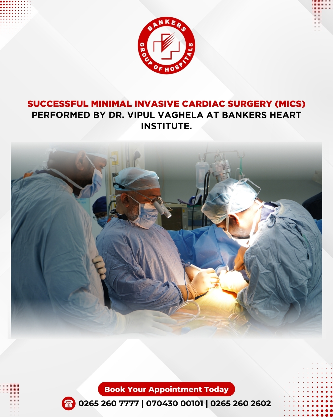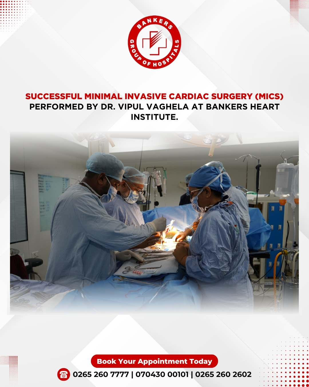 At Bankers Heart Institute, we are committed to providing the most advanced treatments. Here's a glimpse into the incredible work of Dr. Vipul Vaghela, a specialist in Minimal Invasive Cardiac Surgery (MICS).