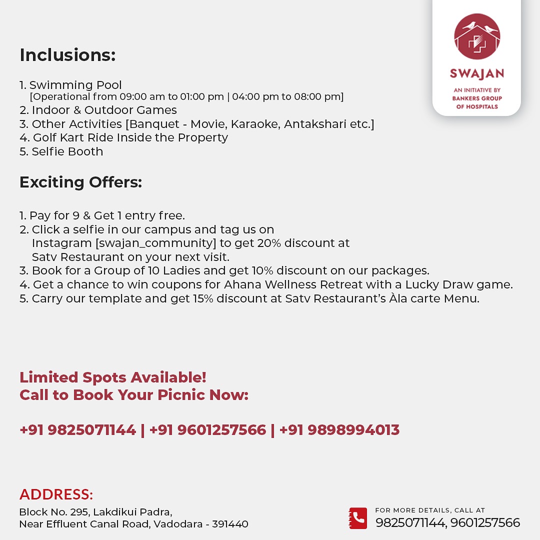 Delicious meals, fun activities, and a chance to WIN exciting offers. Don't miss out on this incredible opportunity for a memorable day in Vadodara.
