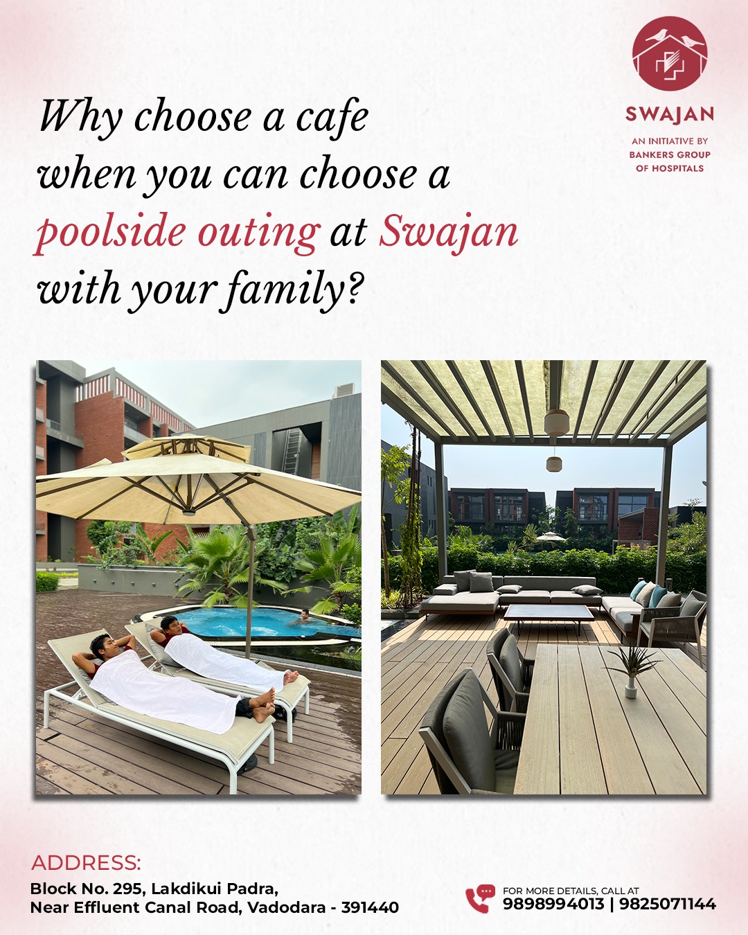 Poolside outing over cafe, yes please! Cafe outings on weekends are common but poolside outings on weekends hit different! Spend quality time with your loved once at Swajan Community.