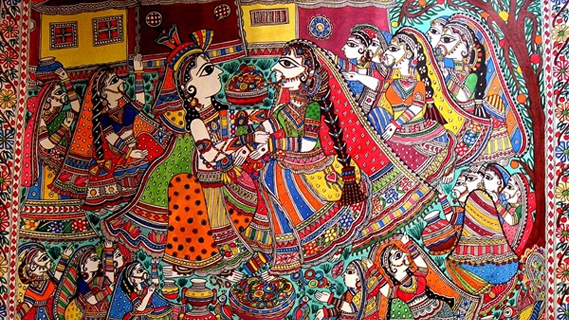 Madhubani art from Bihar is a vibrant folk tradition, traditionally created by women to depict stories from epics, nature, and village life, now globally celebrated.
