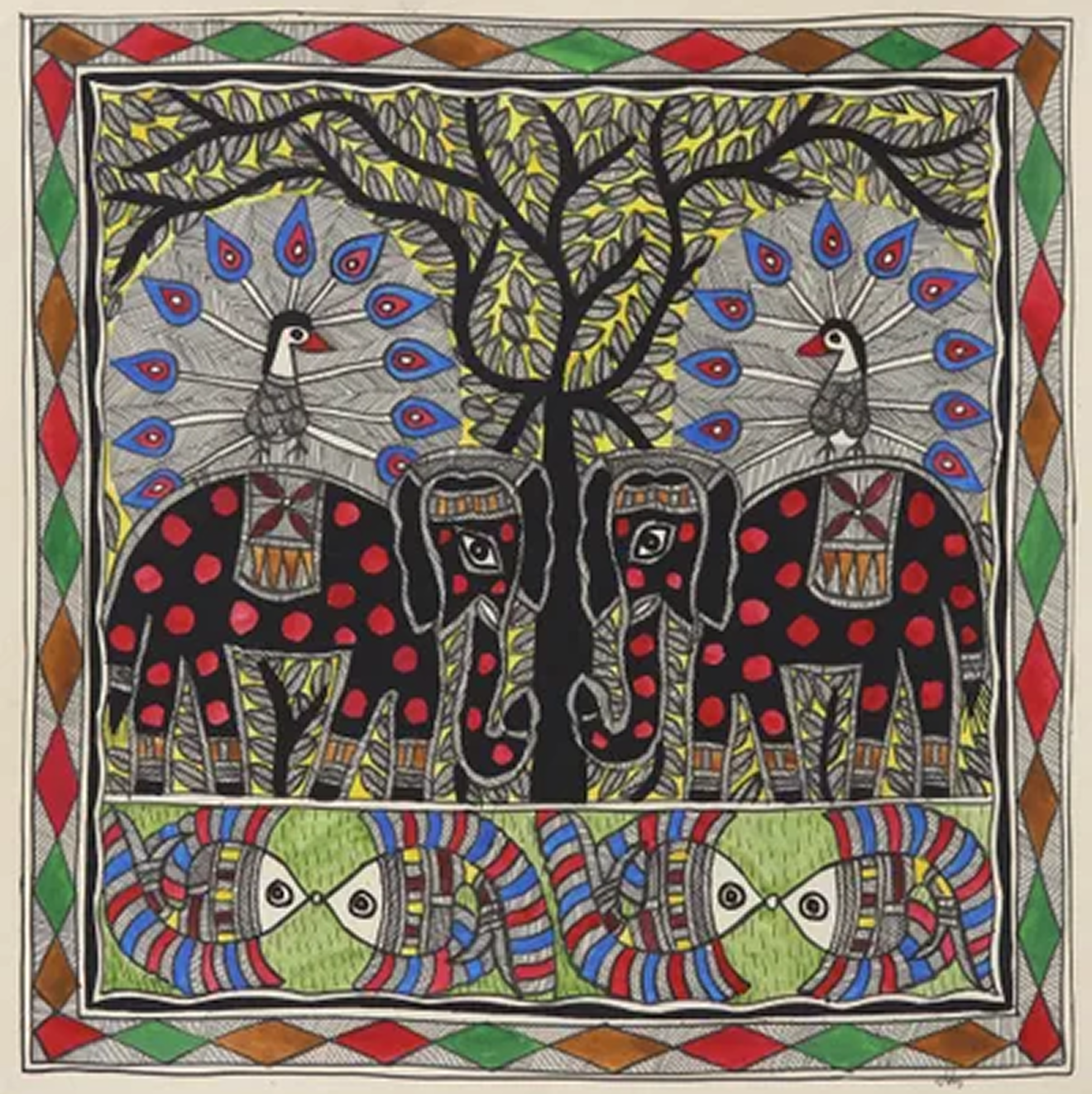 Madhubani art from Bihar is a vibrant folk tradition, traditionally created by women to depict stories from epics, nature, and village life, now globally celebrated.